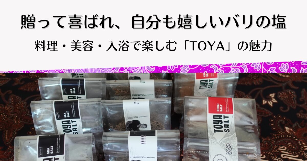 TOYAの塩は、料理にひとふり、入浴にひとさじ、美容にひと手間――どの場面でも、あのウブドの時間を思い出させてくれます。