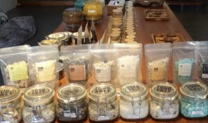 店内は白を基調にした明るい空間で、瓶や袋にいれられ種々の塩が整然と並べられ、棚ごとに説明ラベルが添えられ、それぞれの塩やケア商品の特徴やおすすめの使い方が丁寧に書かれています。
