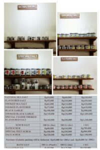 • レモングラスやチリ入りのフレーバー塩Rp50,000Rp70,000(約500700円)