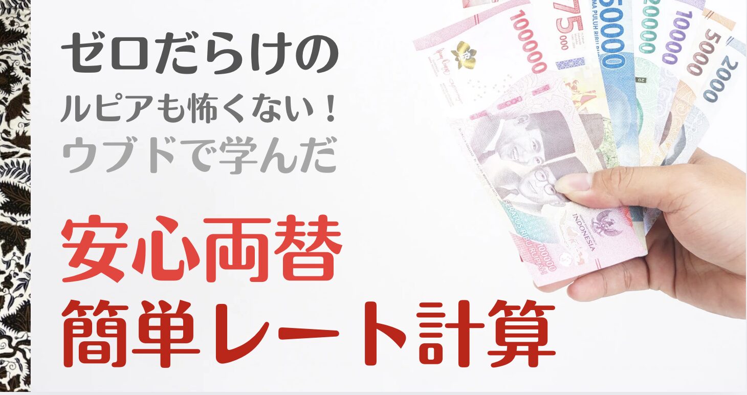 両替は、旅の安心感を大きく左右するポイントのひとつです。ウブドで長期滞在を重ねる中で、私たちが学んだ「失敗しにくい両替の考え方」と「信頼できる両替所の見極め方」を、体験を交えてまとめました。