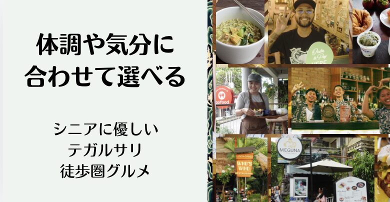 ウブド・テガルサリ周辺に滞在する方に向けて、徒歩で通える範囲で、体調や気分に合わせて食事を選ぶ方法をまとめました。