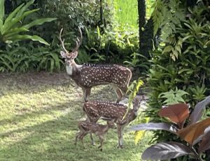 そばの庭に鹿の親子が現れたこともありました。初めは驚いた生き物たちの存在も、滞在が長くなるほど「共に暮らしている感覚」へと変わっていきました。
