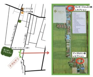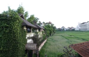 テガルサリは、プンゴセカン通りとモンキーフォレストに囲まれるように建ち、その間に広がる2つのライステラスを望めます。