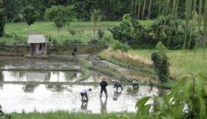 敷地を横切って田んぼに向かう農夫さんの姿も日常の一部。編笠をかぶったその姿は、まるでバリ絵画の中から抜け出してきたよう。