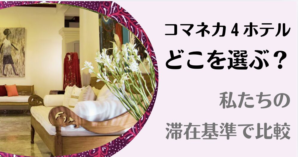 この記事では、コマネカ4ホテルの「共通点」と「違い」を整理しながら、考え方をまとめます。