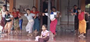 王宮の前では、子どもたちが舞の練習をしていました。男の子たちは勇ましく構え、女の子たちは指先まで神経を行き届かせながら、優雅に体を動かしています。