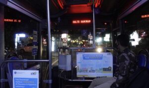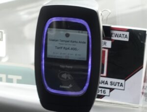 運賃はひと乗り一律Rp4,400(約40円)。距離に関係なく同一料金で、現金払いは不可です。