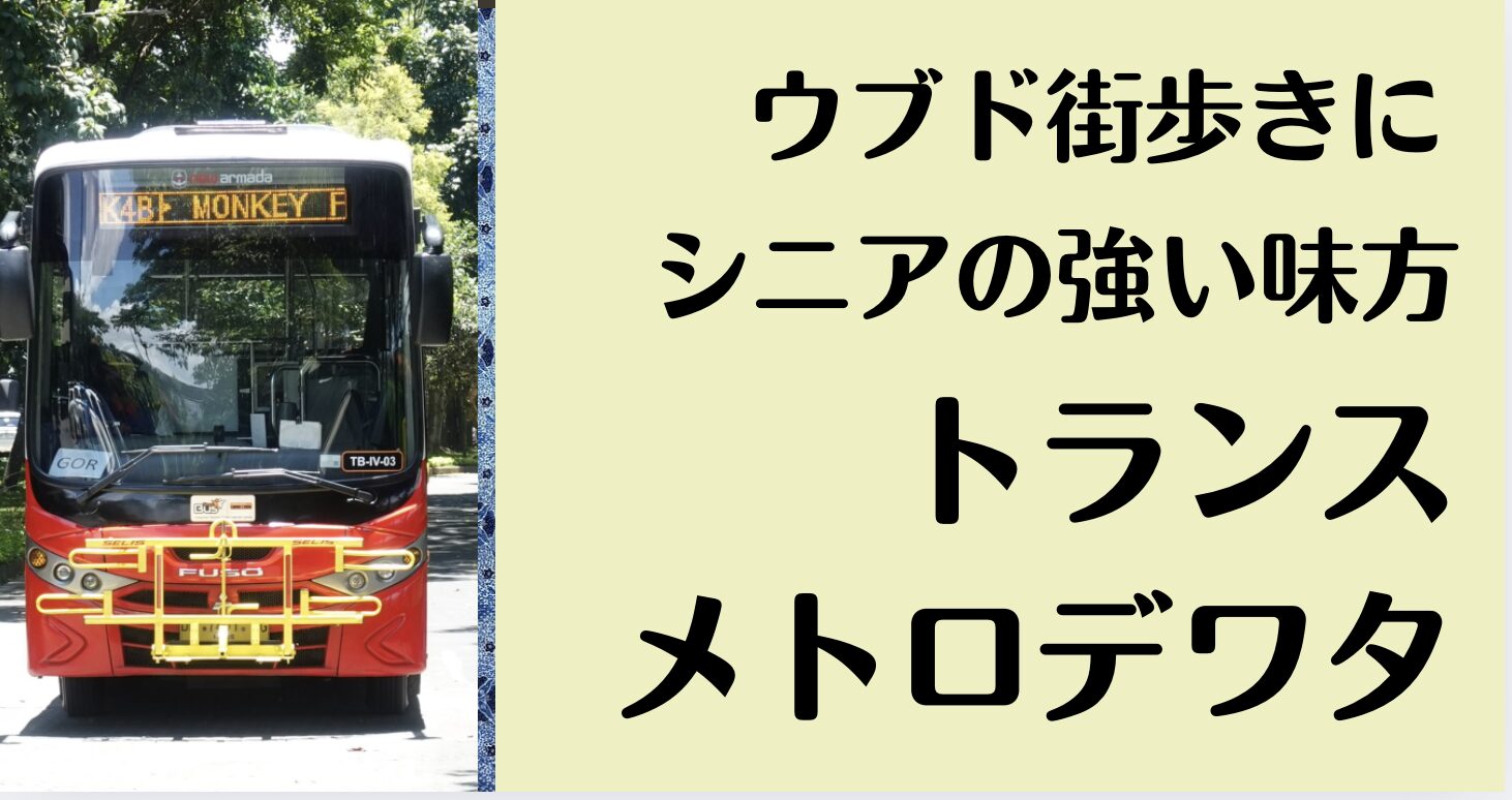 エアコンの効いた車内、静かな走行音、そして窓から見えるゆったりしたウブドの風景。私たちシニア世代にとって、「TMDバス」はウブドでの生活に欠かせない「新しい足」になりました。