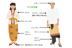 バリでドレスコードを要求される場所は超高級レストランなどに限られます。そのような時は、男性は襟付きシャツに長ズボン、女性はワンピースやサロンといった装いでOK。
