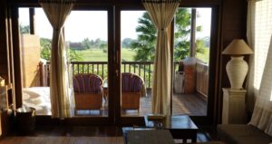 初めて泊まったテガルサリの部屋。バルコニーの向こうに広がる緑を眺めながら、「ここにまた戻ってこよう」と、夫と帰る日まで何度も口にしていました。