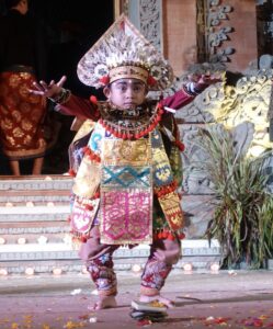 公演の最後に登場したのは、アノム氏のお孫さん。まだ幼いのに、堂々とした姿で舞台に立ち、観客の視線を一身に集めました。披露したのは、戦士の舞「バリス」。力強くも繊細な動きに、感嘆しました。