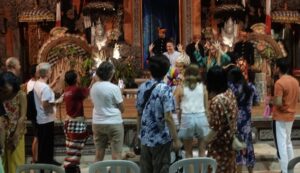 バリ舞踏は本来、寺院の儀式や村単位(バンジャール)での奉納芸能として行われます。王宮などに出演する舞踏団は全てバンジャール単位で組織されています。