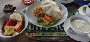 ここでの日々は、毎朝新鮮なフルーツや、バナナパンケーキ、ナシゴレン、ミーゴレンなど、優しい味で始まります。体調や気分に合わせて様々なメニューが選べるため、飽きることがありませんでした。