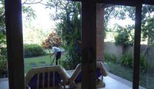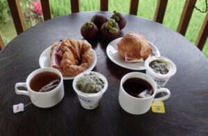 そんな簡単な食事も、ベランダで田んぼを眺めながらですと、不思議と会話も弾みバリでの日常を過ごしているというなんともいえない幸福感を味わえます。