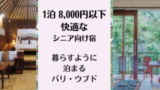 バリ島・ウブドでシニア夫婦が安心して滞在できるホテルを紹介。王宮から徒歩圏、1泊8,000円以下・エアコン&温水シャワー完備の条件を満たした3軒を、口コミ評価と体験談を交えて詳しく解説。長期滞在や観光に便利な立地情報も。
